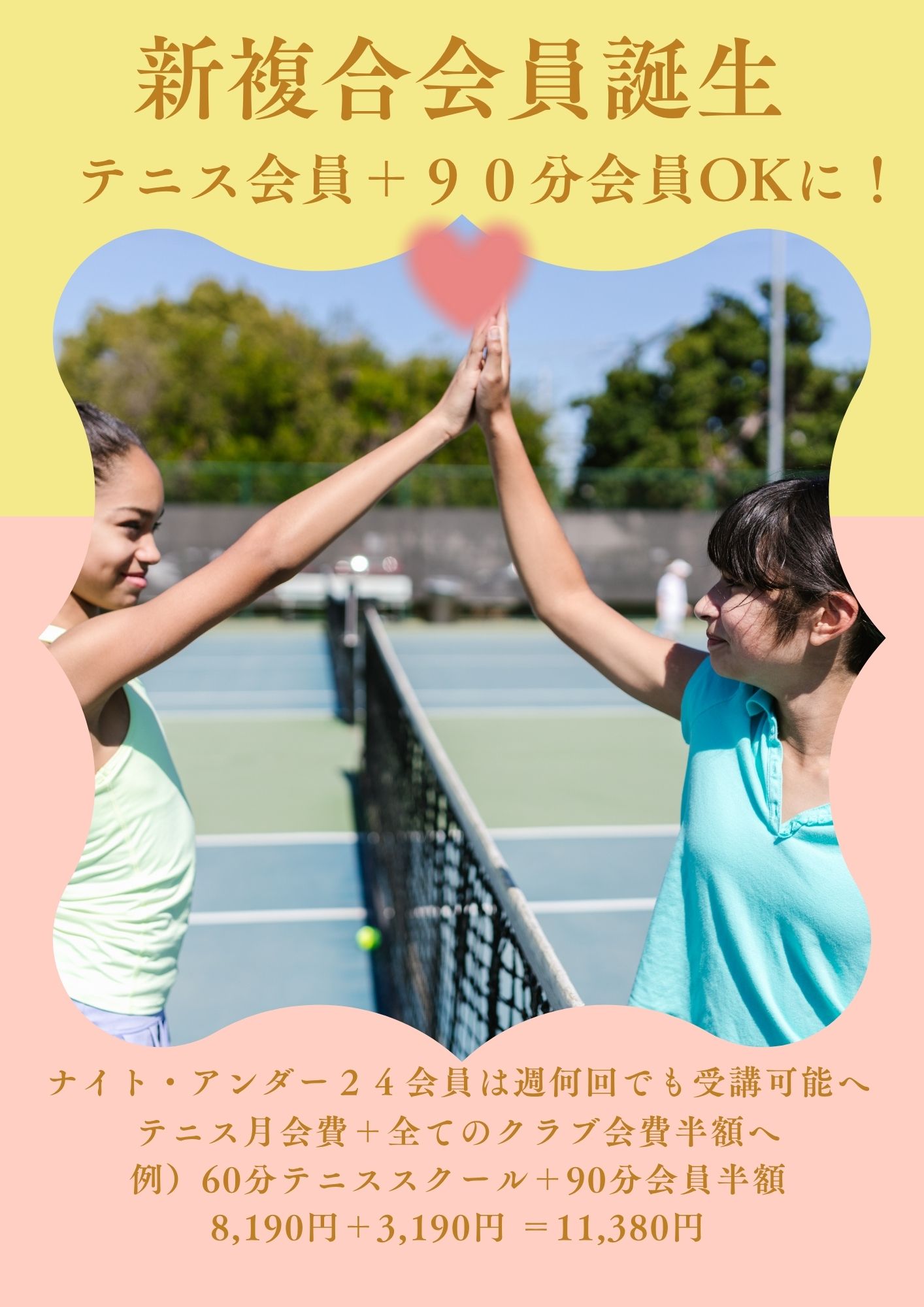 🎈体験会開催中!4月~早朝クラス誕生!初中級クラス土曜日8:35増設!さらに通いやすくなりました🎈5月より新複合会員誕生!テニス+クラブ半額へ