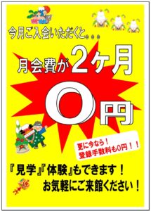 運動しやすい衣服、シューズ、タオル等はご準備ください。※休館日は体験いただけません。