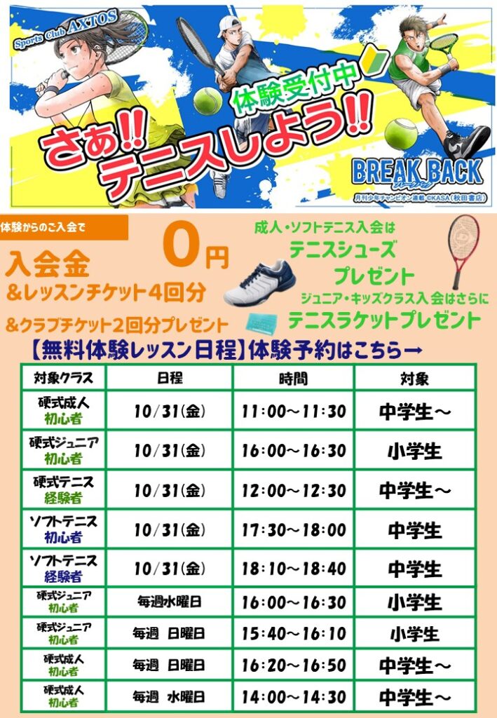 🎾10月体験のお知らせ🍂 天候に左右されないソフトテニス・硬式テニススクール