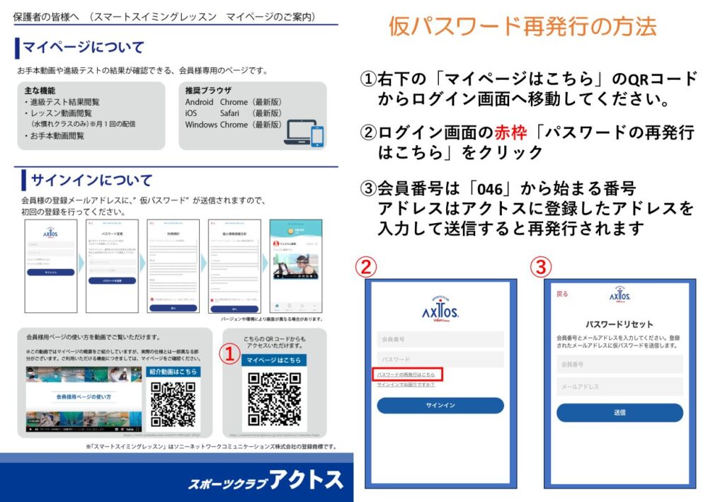 スマートスイミング「マイページ」登録のご案内