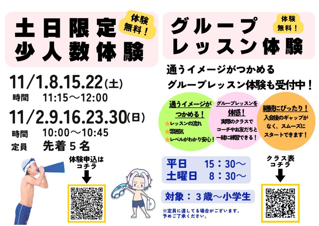 クラスの定員には限りがありますのでご注意ください。