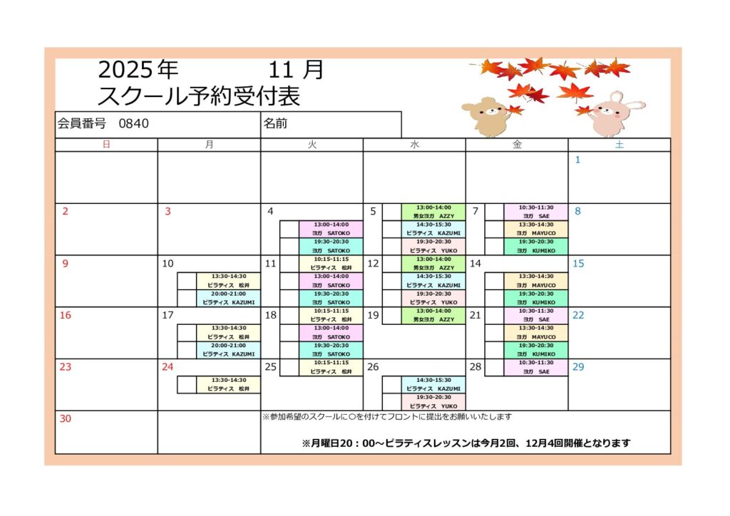 ★2025年11月スクールスケジュール★