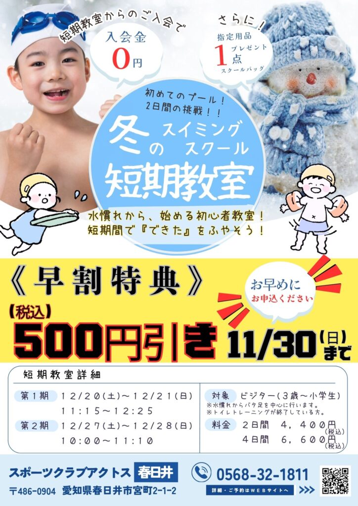 アクトスのスイミング短期教室にチャレンジしてみませんか?