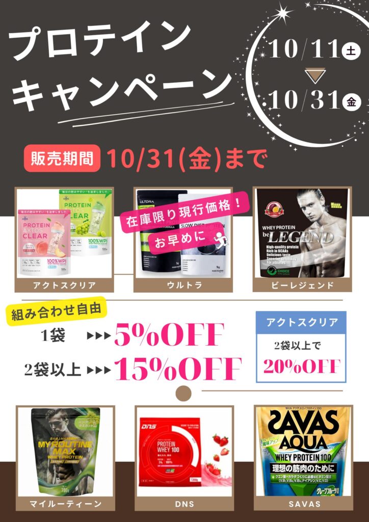まもなく終了!プロテインキャンペーンは10/31(金)まで٩( ¨ )ว=͟͟͞͞