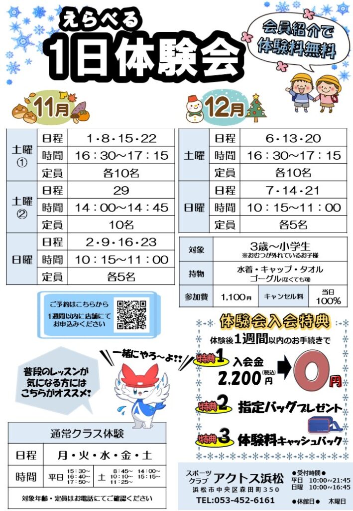 体験のご予約はWEB又はアクトス浜松店にお問い合わせください。