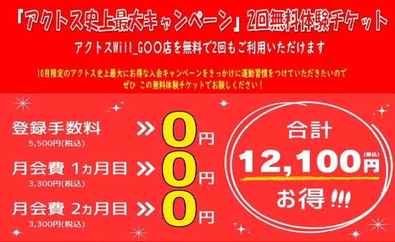 10月13日(月・祝)の『スポーツの日』でお配りさせていただいた『アクトス史上最大キャンペーン 無料体験チケット』を