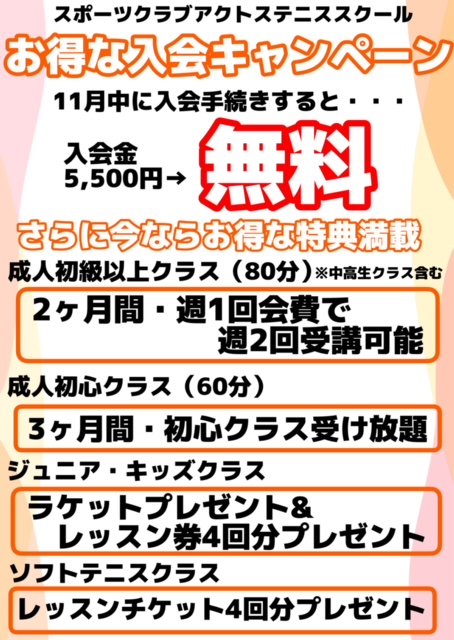 テニススクール超お得な入会キャンペーン開催中!体験レッスンも好評受付中!