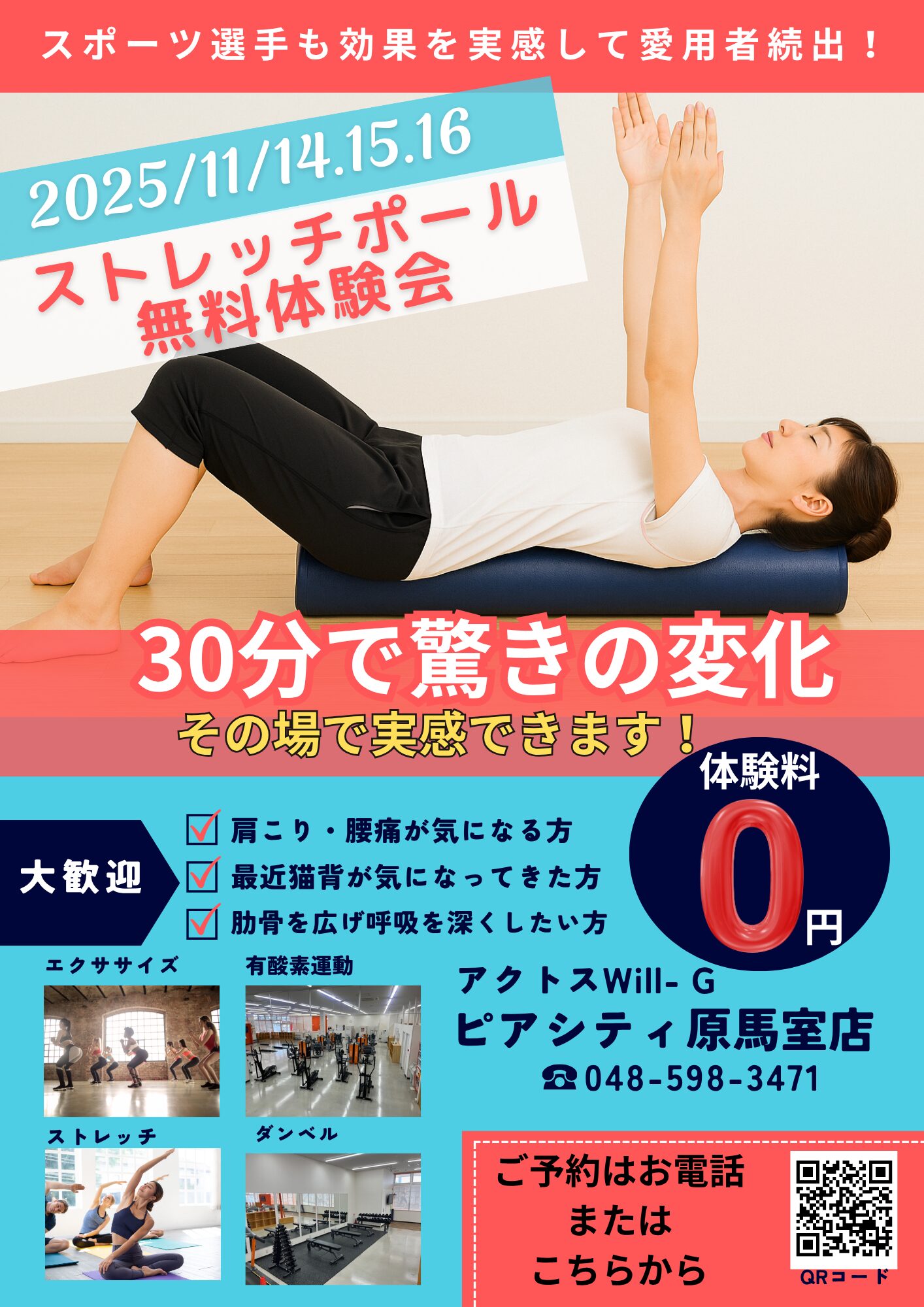 埼玉県民の日!マシーンを使わずにストレッチをしませんか?30分で驚きの変化、実感できます!