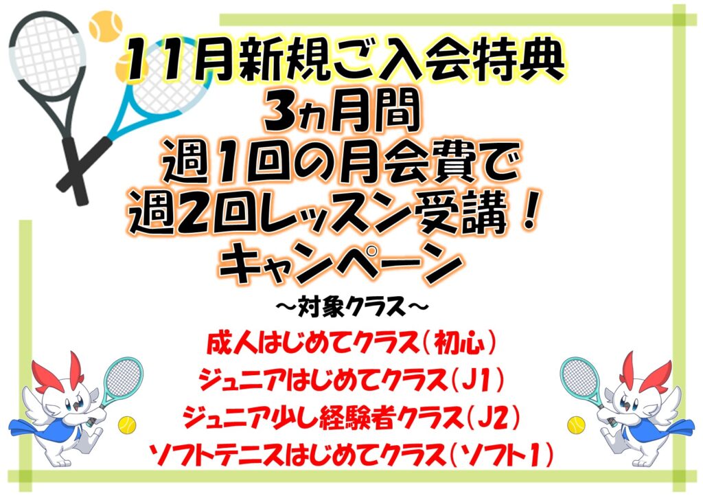 『テニスはじめたい!』を応援☺2倍受講キャンペーン実施中(*^-^*)