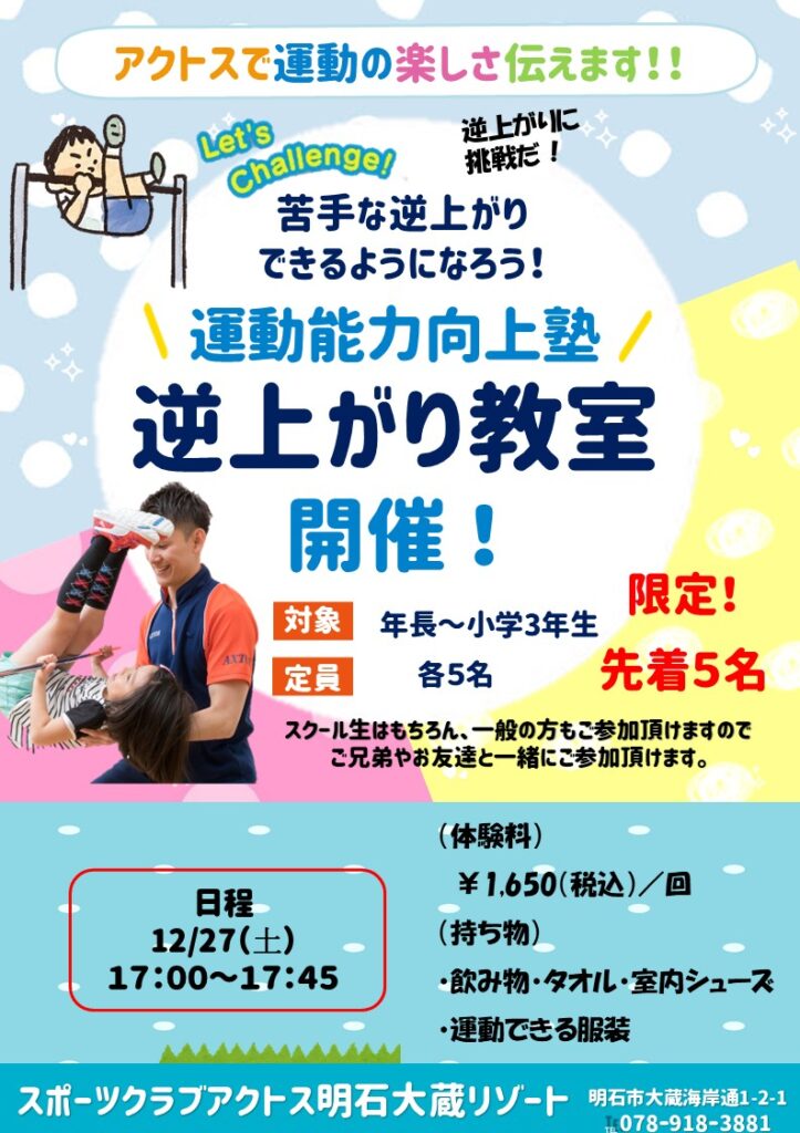 ・学校体育についていけるか不安な方・逆上がりができるようになりたい方・倒立ができるようになりたい方・運動の基礎体力(腕支持力アップ、柔軟性アップなど)をつけたい方におすすめです。
