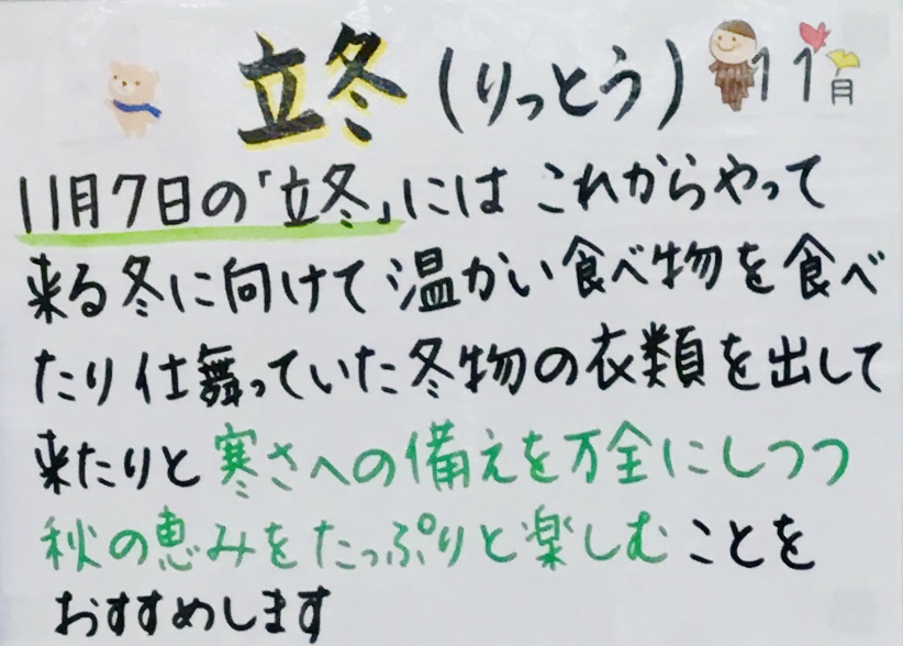11月のテーマは「立冬」「睡眠」「健康的な食事」です。