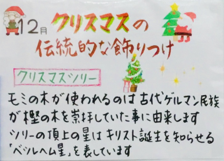 店内ボードにて、12月の「スタッフ豆知識」を掲示しています。