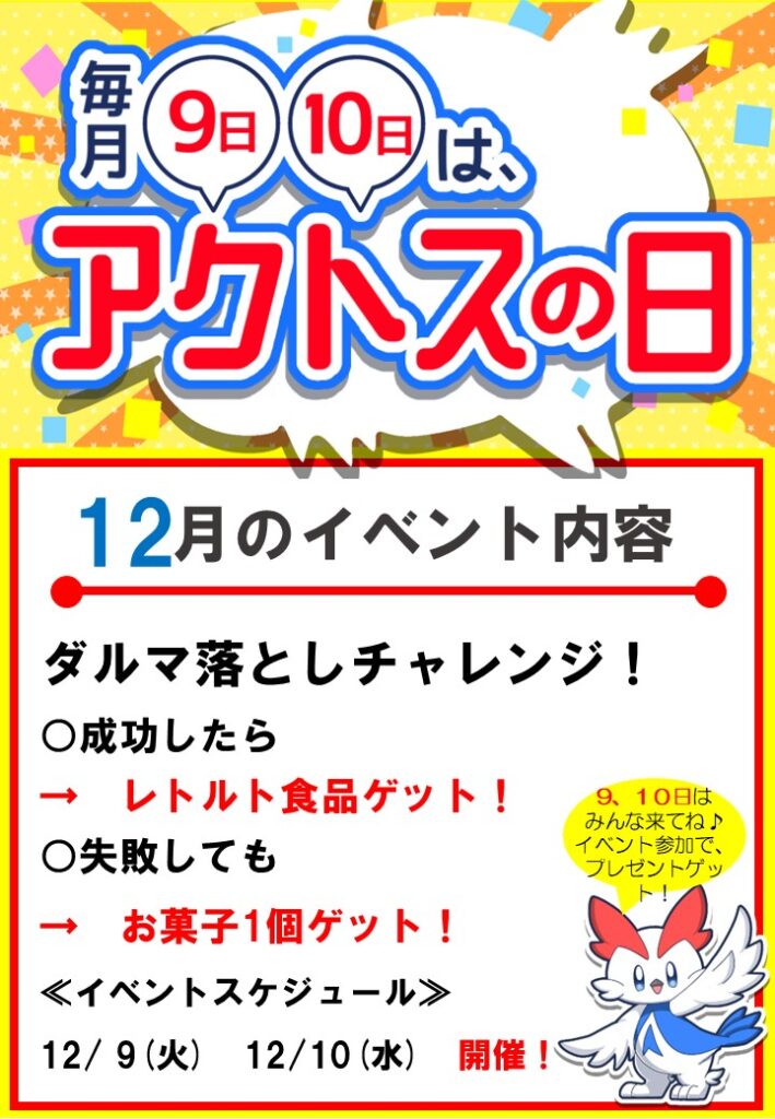 12月のイベントは、ダルマ落としチャレンジを開催いたします♪