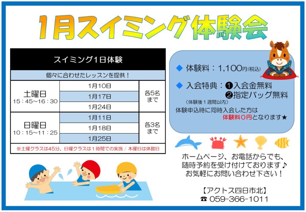 【1月】🏊スイミング体験会🐎🎍