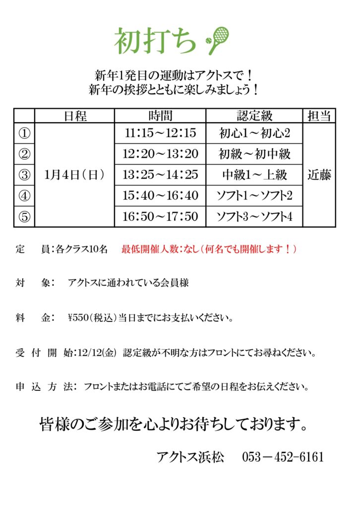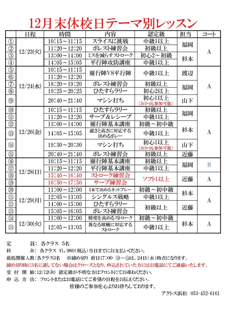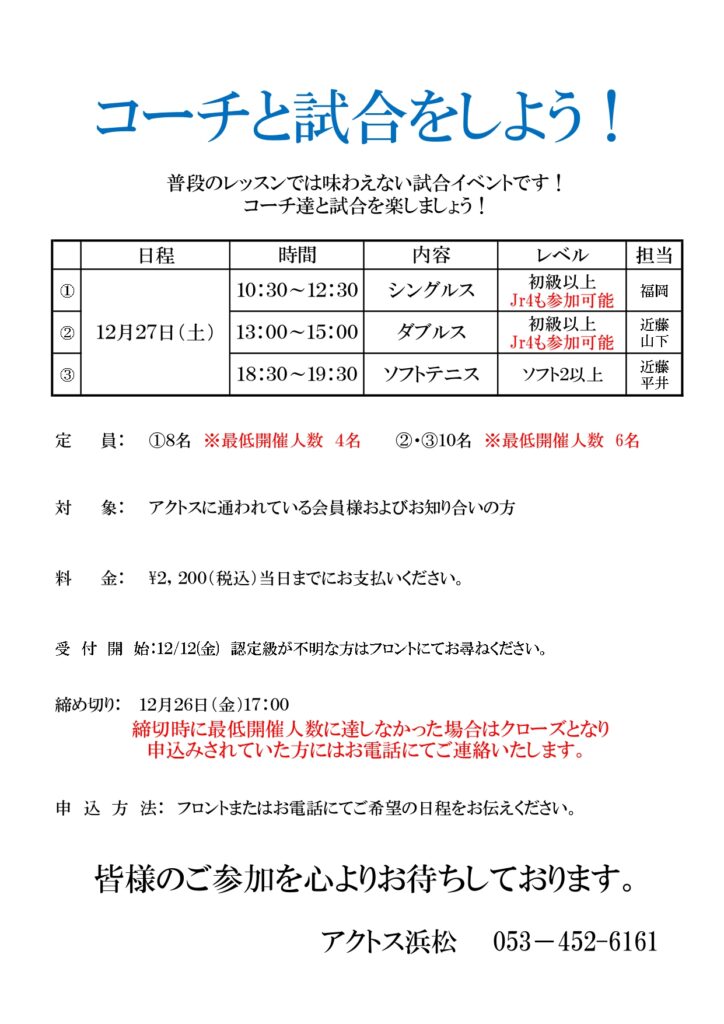 12月テニスイベントのお知らせ