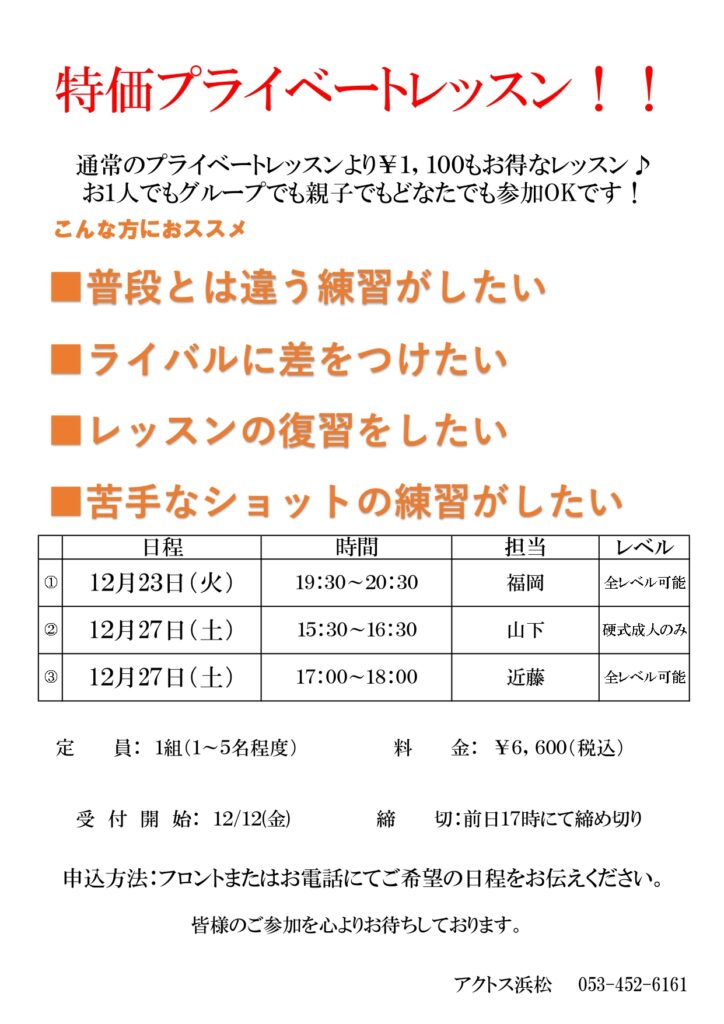 【特価プライベートレッスン】