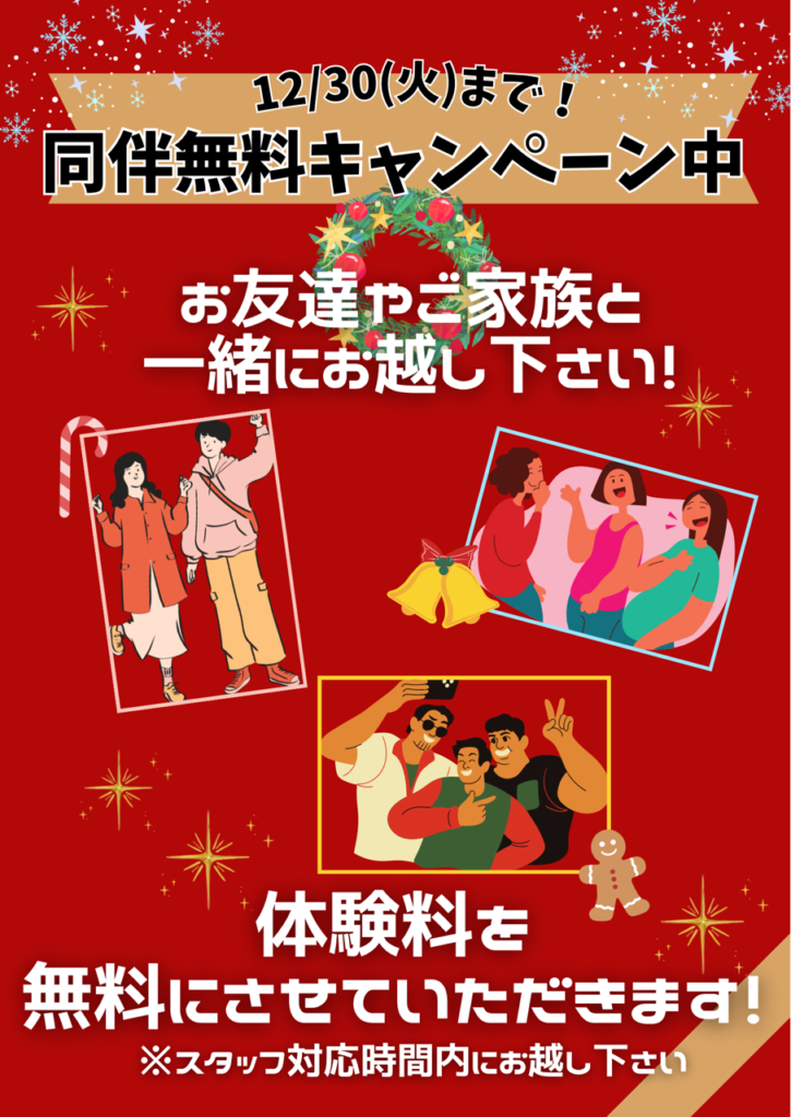 会員様と同伴で体験料無料で