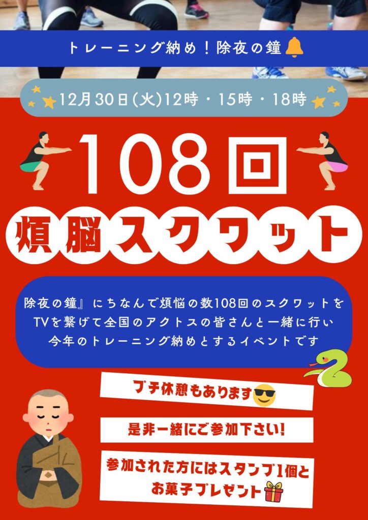 【12/30(火)】年末最後のイベント開催☆108回煩悩スクワット!