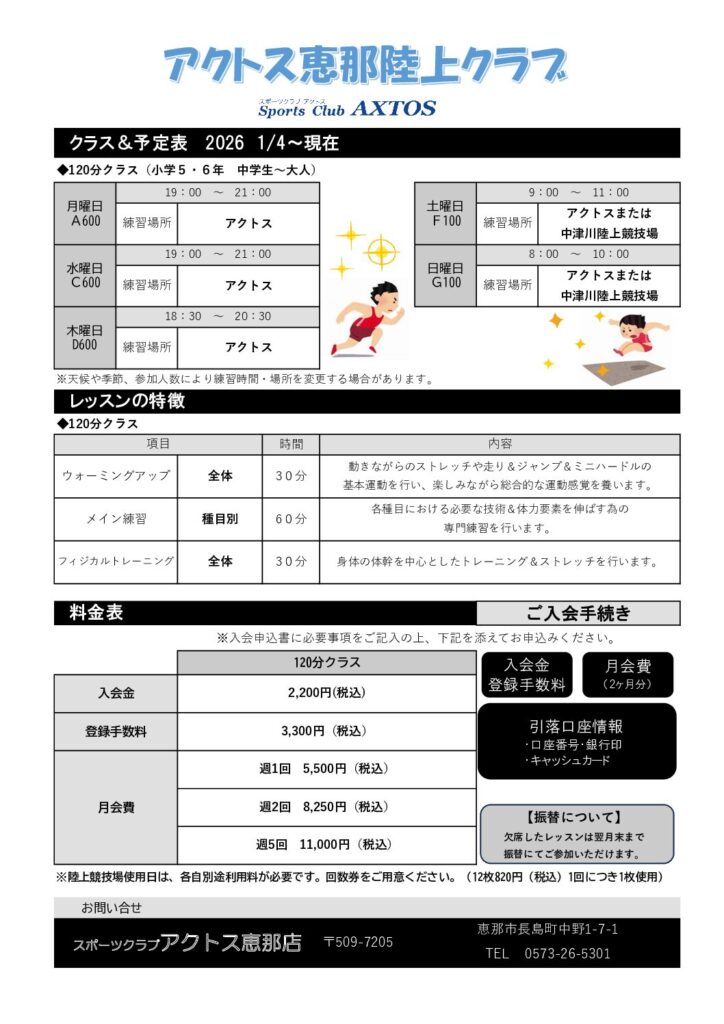 新規開校!アクトス恵那陸上スクール小学生クラス!