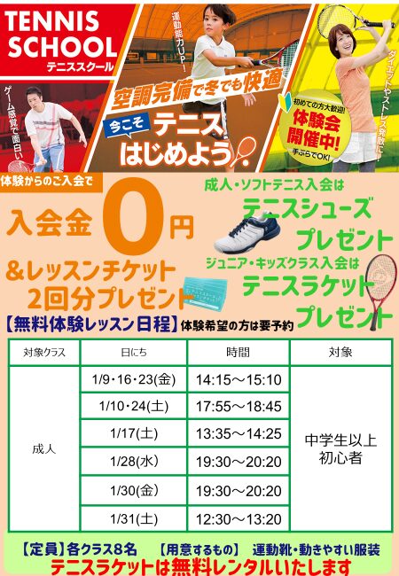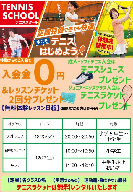 ◆12月・1月テニス体験のお知らせ◆
