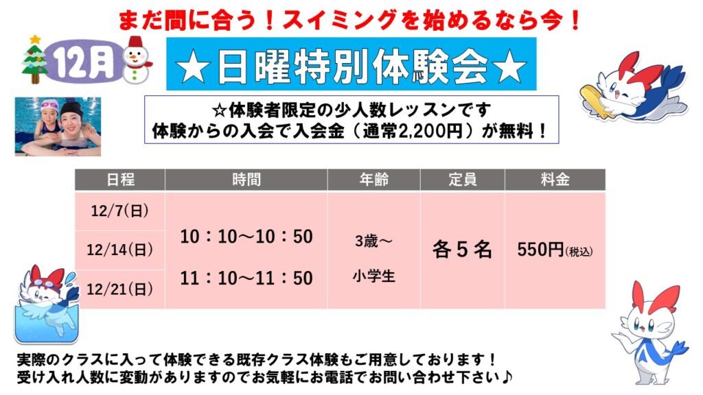 冬こそアクトス!ジュニアスイミング体験大好評受付中!