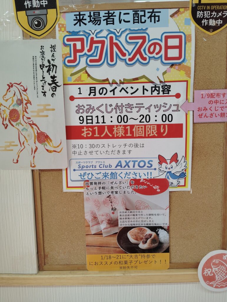 アクトスおみくじで大吉を引いた方は下記の期間中にフロントへ持参でぜんざい餅GET!