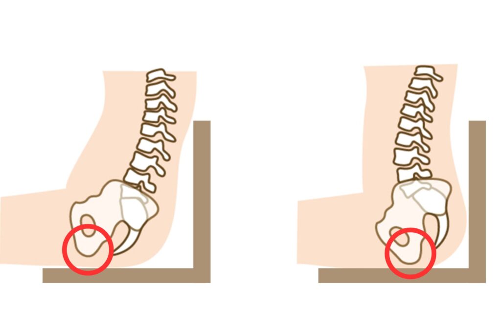 坐骨とは骨盤の底にある2つの突起部分で、椅子にしっかり当たることで自然で綺麗な姿勢が作れます。