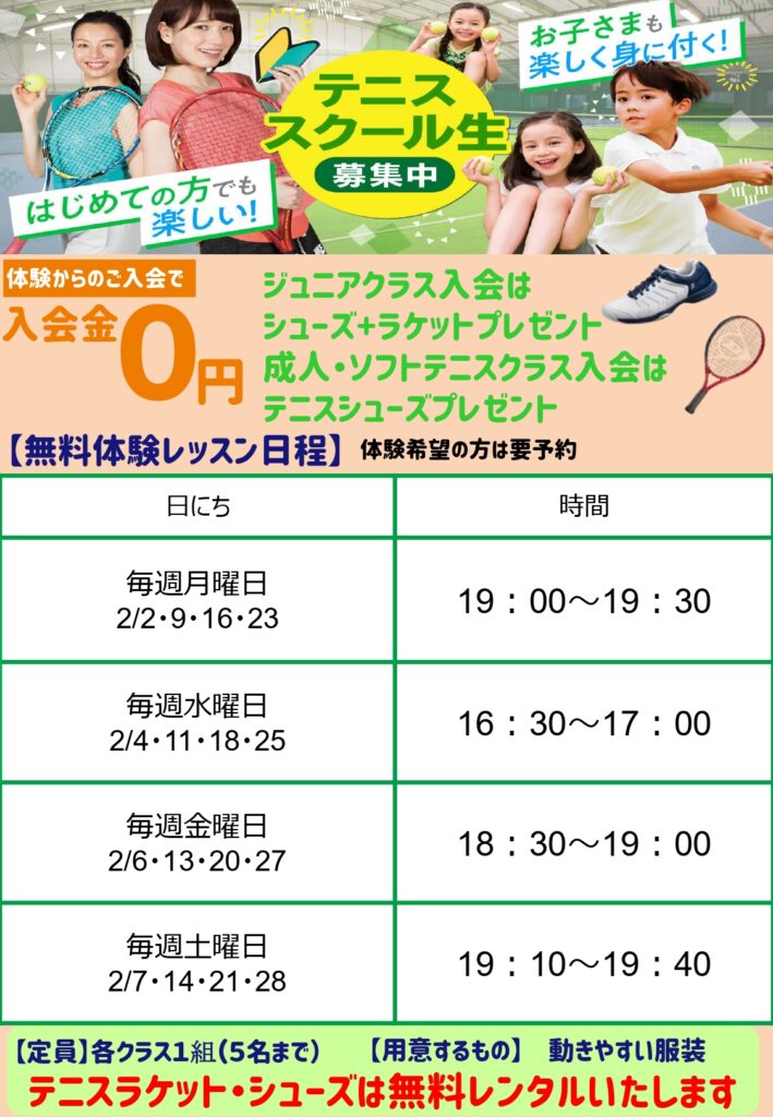 【2月】テニススクール体験日程🎾