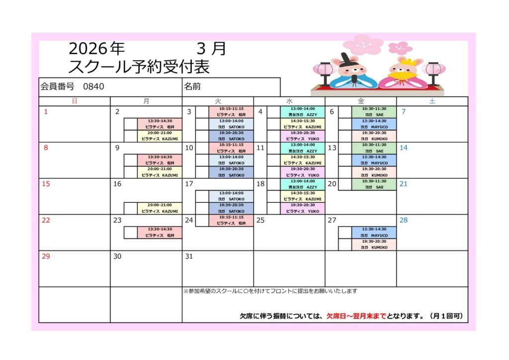 ★2026年3月スクールスケジュール★
