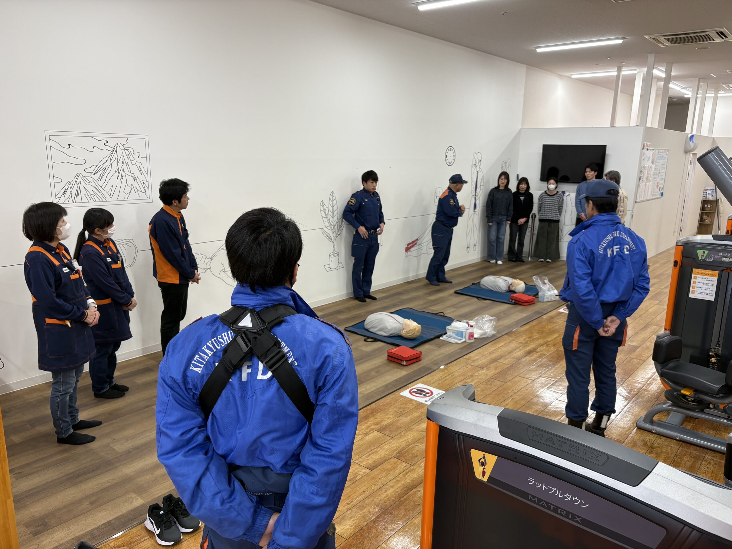 八幡西消防署様に出張いただき、AEDの使い方や救命救急の考え方など休館日を利用して受講しました。