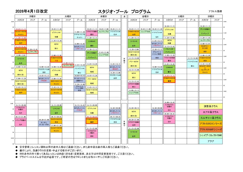 2026年4月~プログラムタイムテーブルのお知らせ
