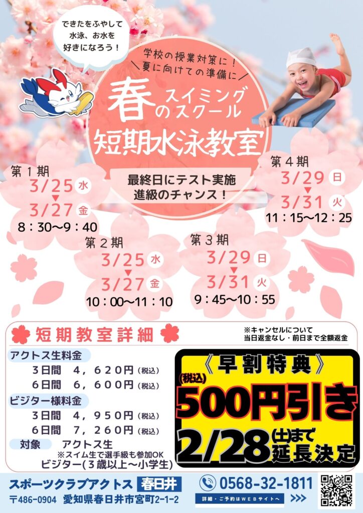 春の短期教室、好評受付中!