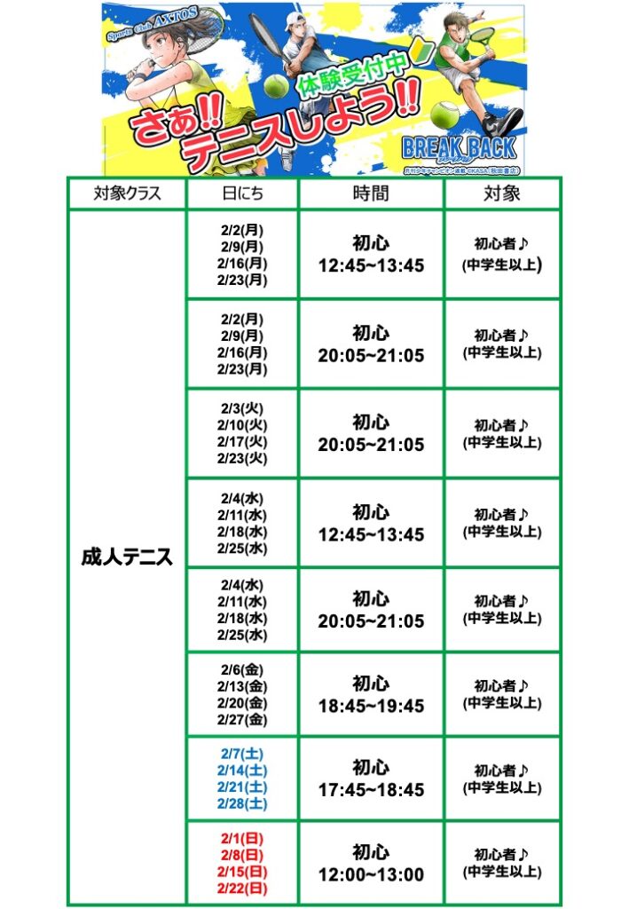 テニススクールの月会費がなんと≪半額≫にっ!!