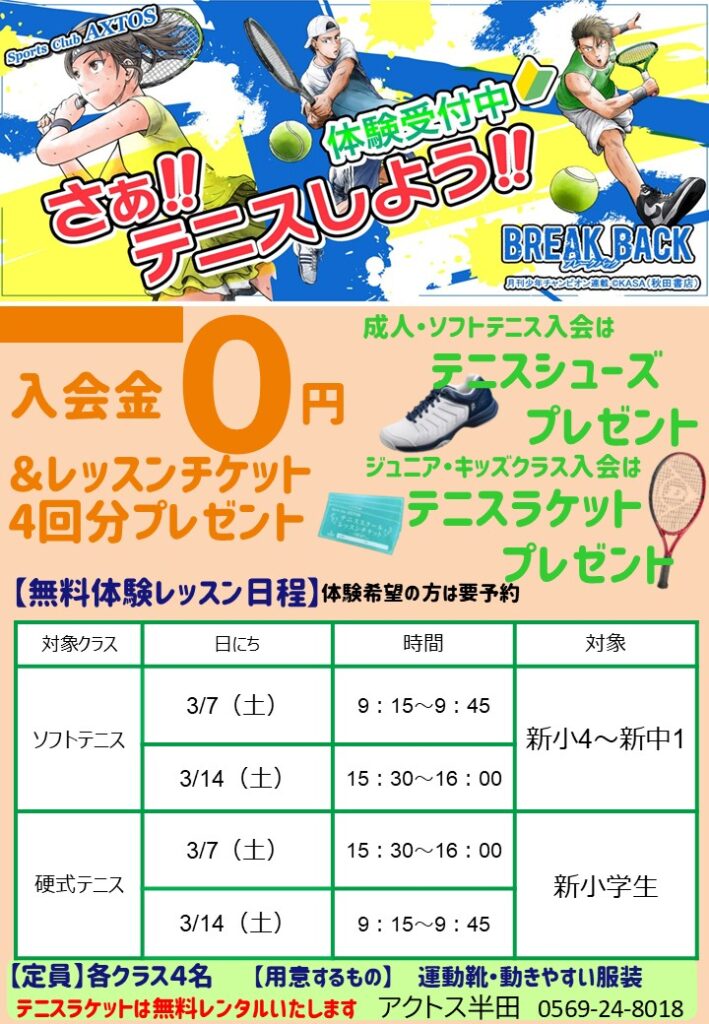 ただいまアクトステニススクールでは、