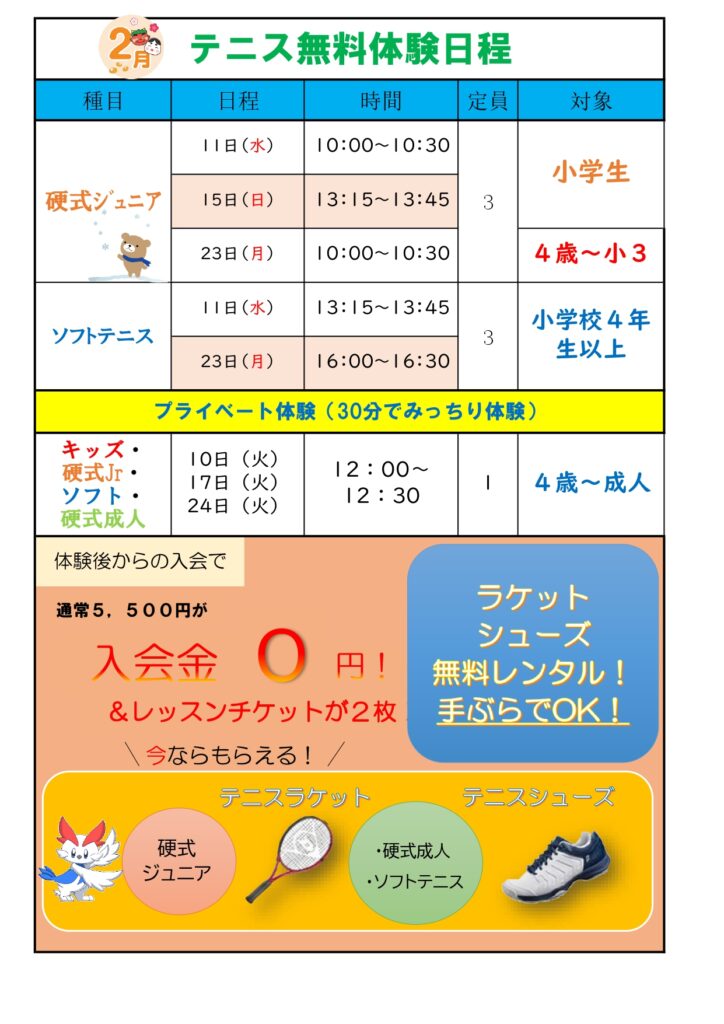 【無料体験】テニスってこんなに楽しいんだ!!
