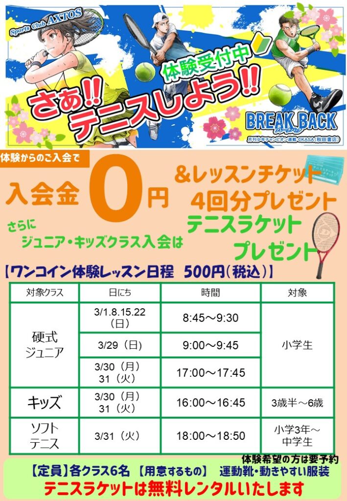 テニススクール超お得な入会キャンペーン開催中!体験レッスンも好評受付中!