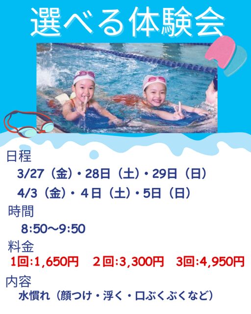 水に慣れながら、楽しんでもらう!をコンセプトに選べる3回体験を用意いたしました!!
