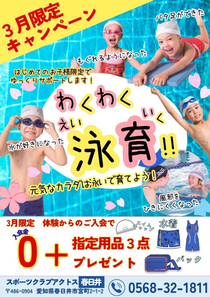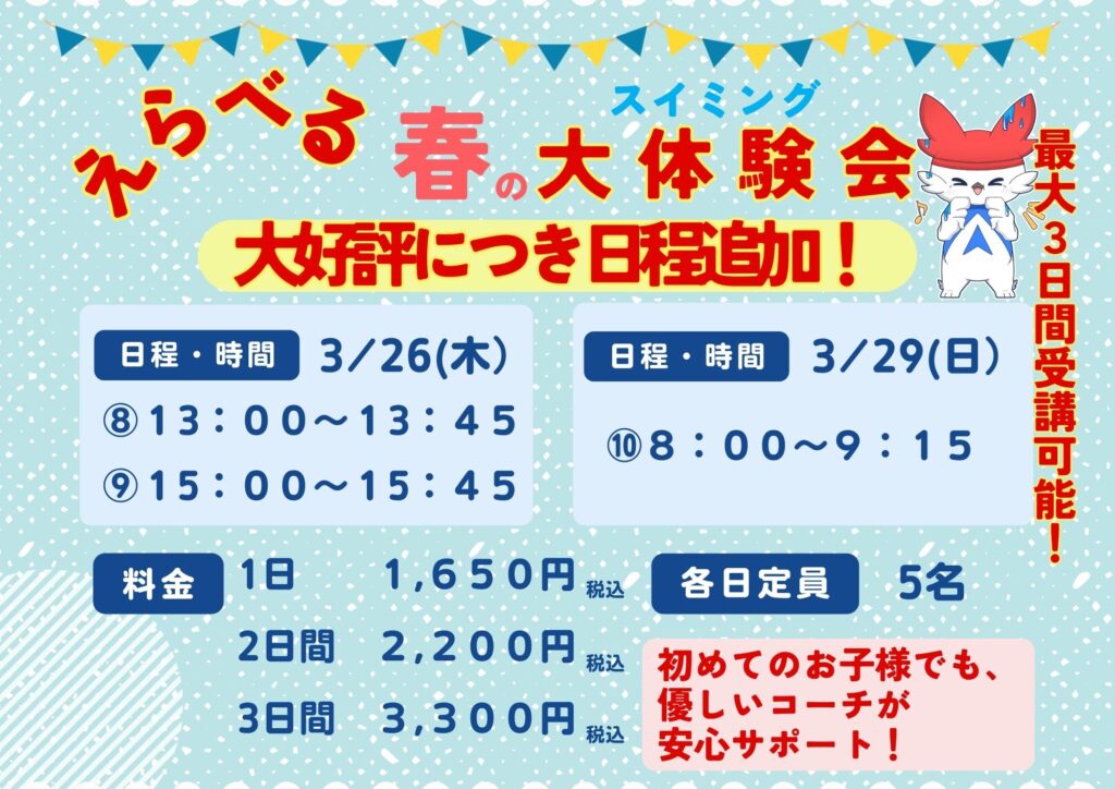 【好評に日程追加!】春休み限定!スイミング選べる体験会♪