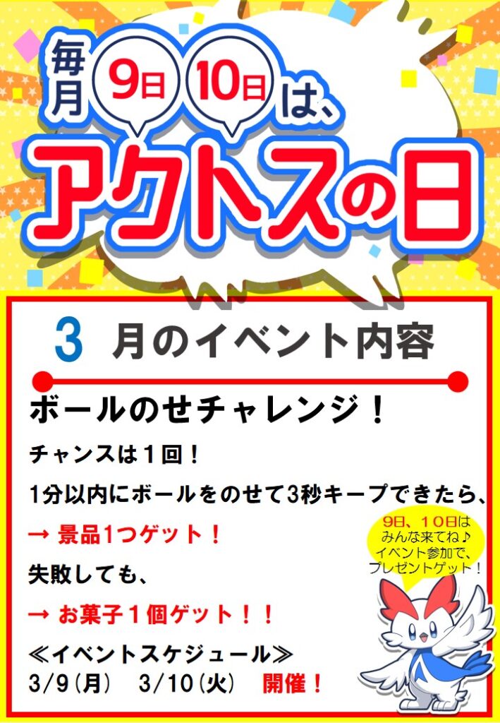 毎月開催!!9日・10日は『アクトスの日』
