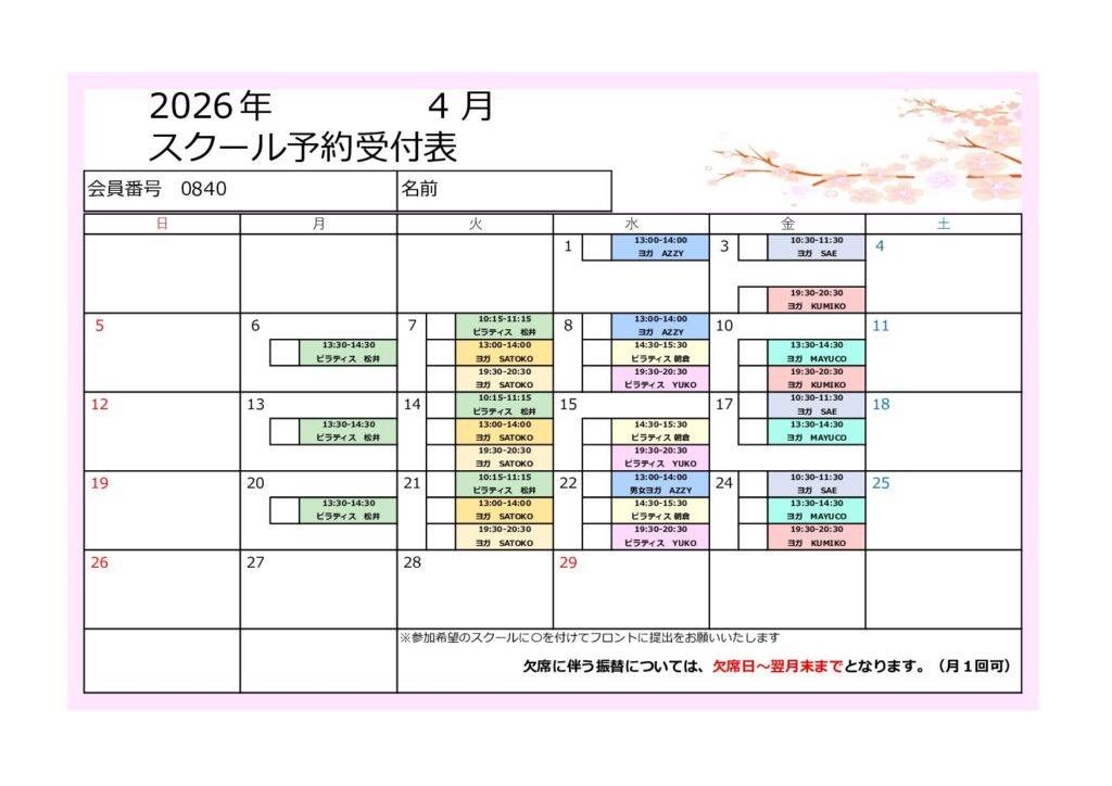 ★2026年4月スクールスケジュール★