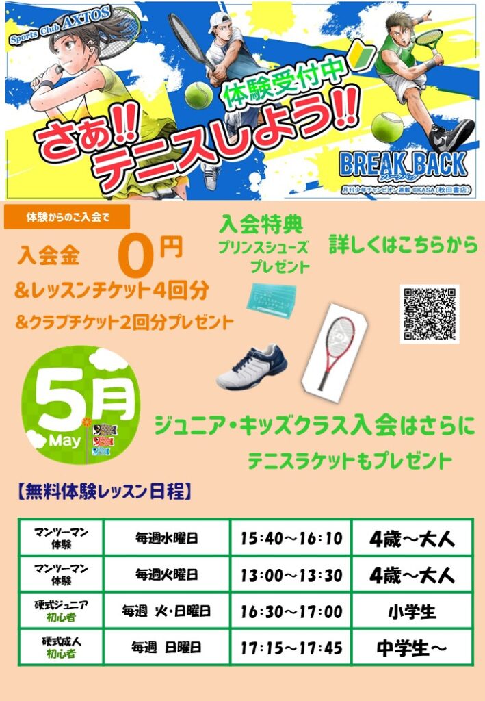 冷暖房完備楽しい優しいテニススクール!お得な入会プラン用意しました。テニス体験好評受付中!!
