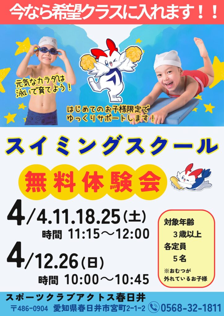 ぜひ一度アクトスのスイミングスクールを体験してみてください!!