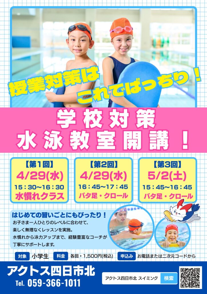 🌸【学校授業対策】水泳教室開講!🏊
