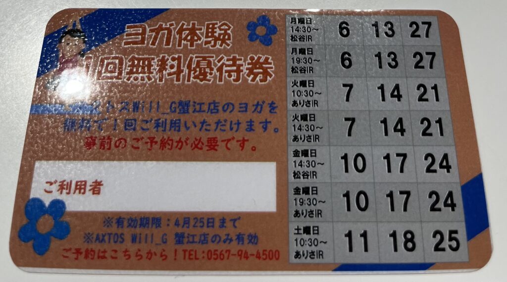 アクトスWill_Gイオンタウン蟹江店にはジムのみをご利用いただける正会員とは別に、ヨガのレッスンを月3回受けて頂ける『ヨガ会員』がございます。