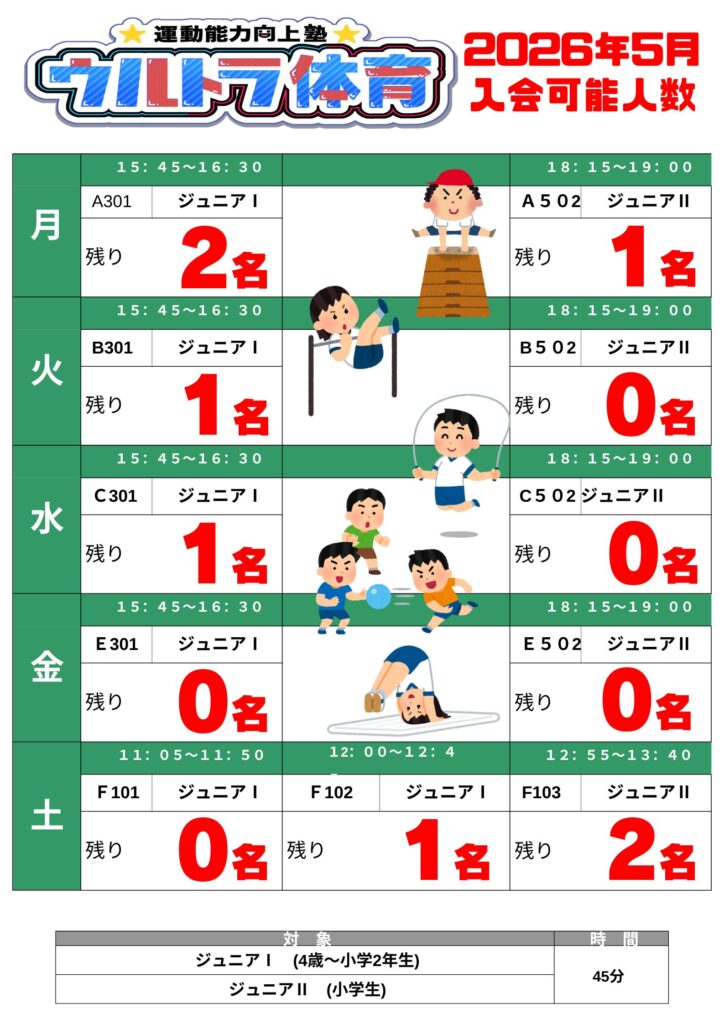 【少人数制】ウルトラ体育 4月特別クラス体験募集中