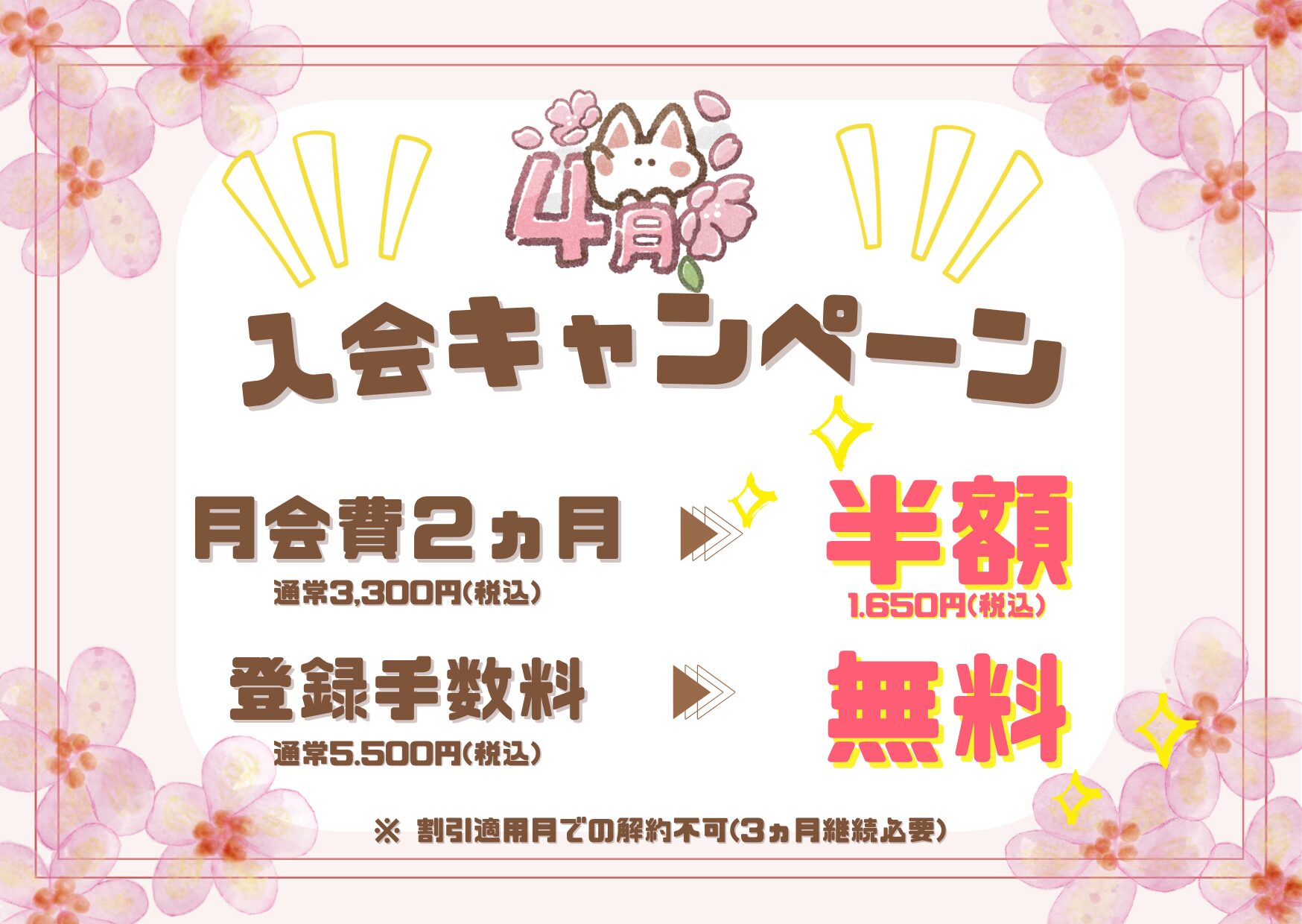 2ヵ月間の月会費 半額!