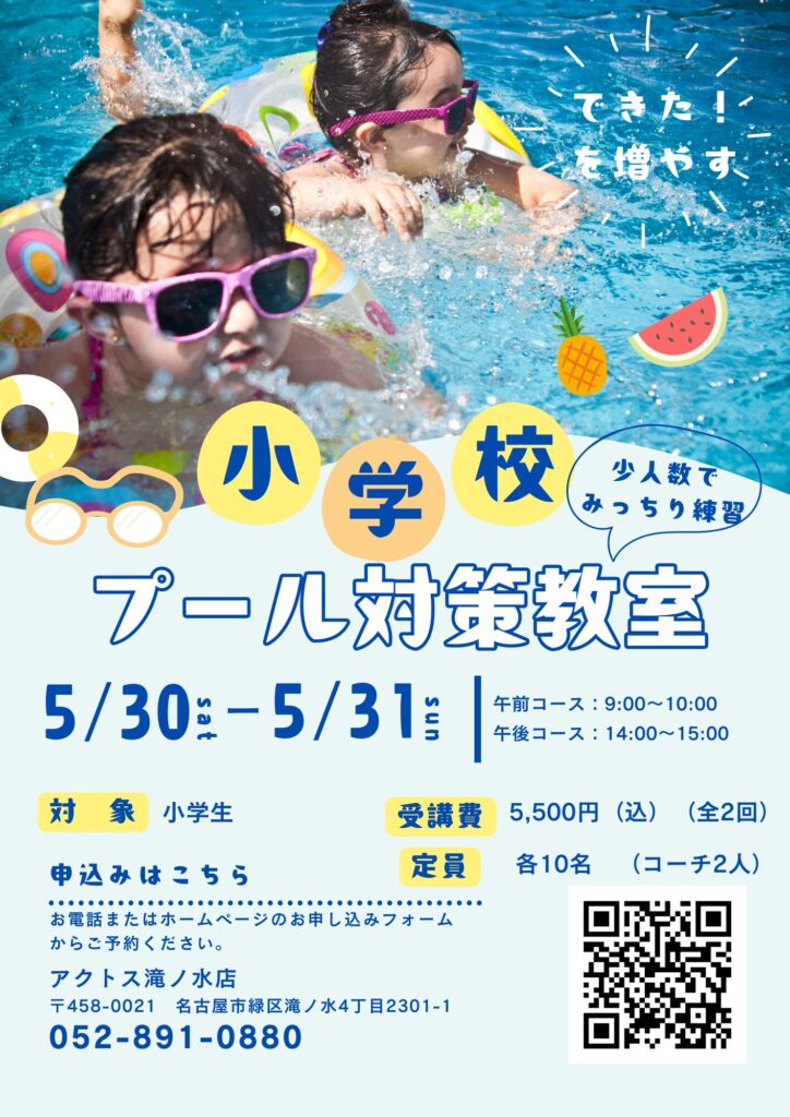 体育で水泳の授業が始まる前に、アクトスのプールで泳ぎの練習をしませんか?