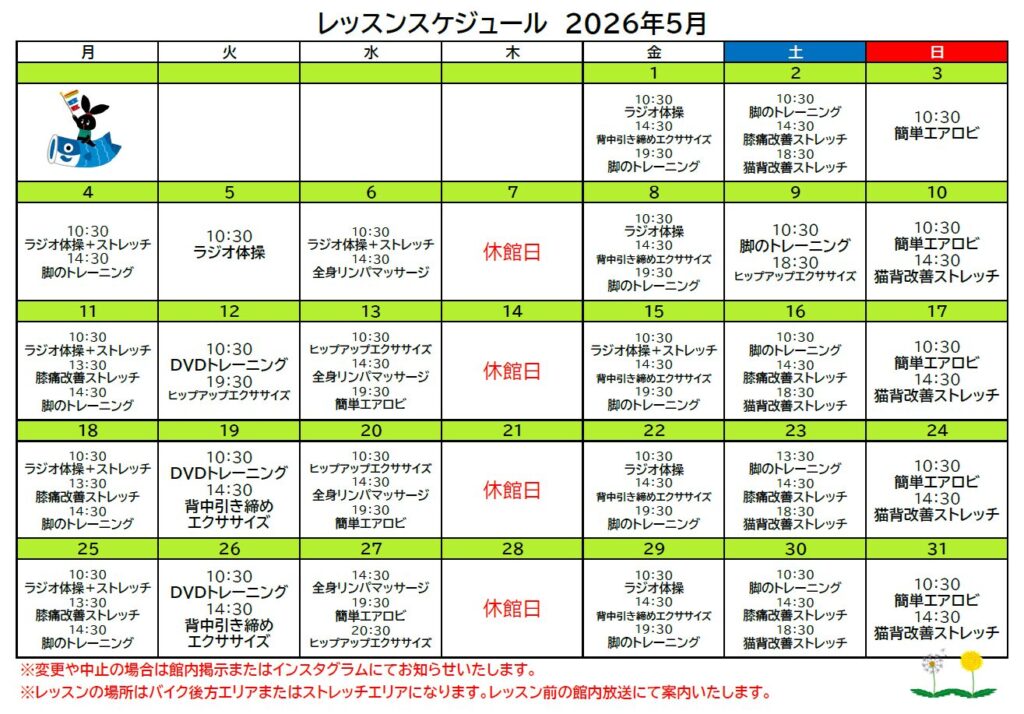 5月のレッスンのご案内です💁♀️