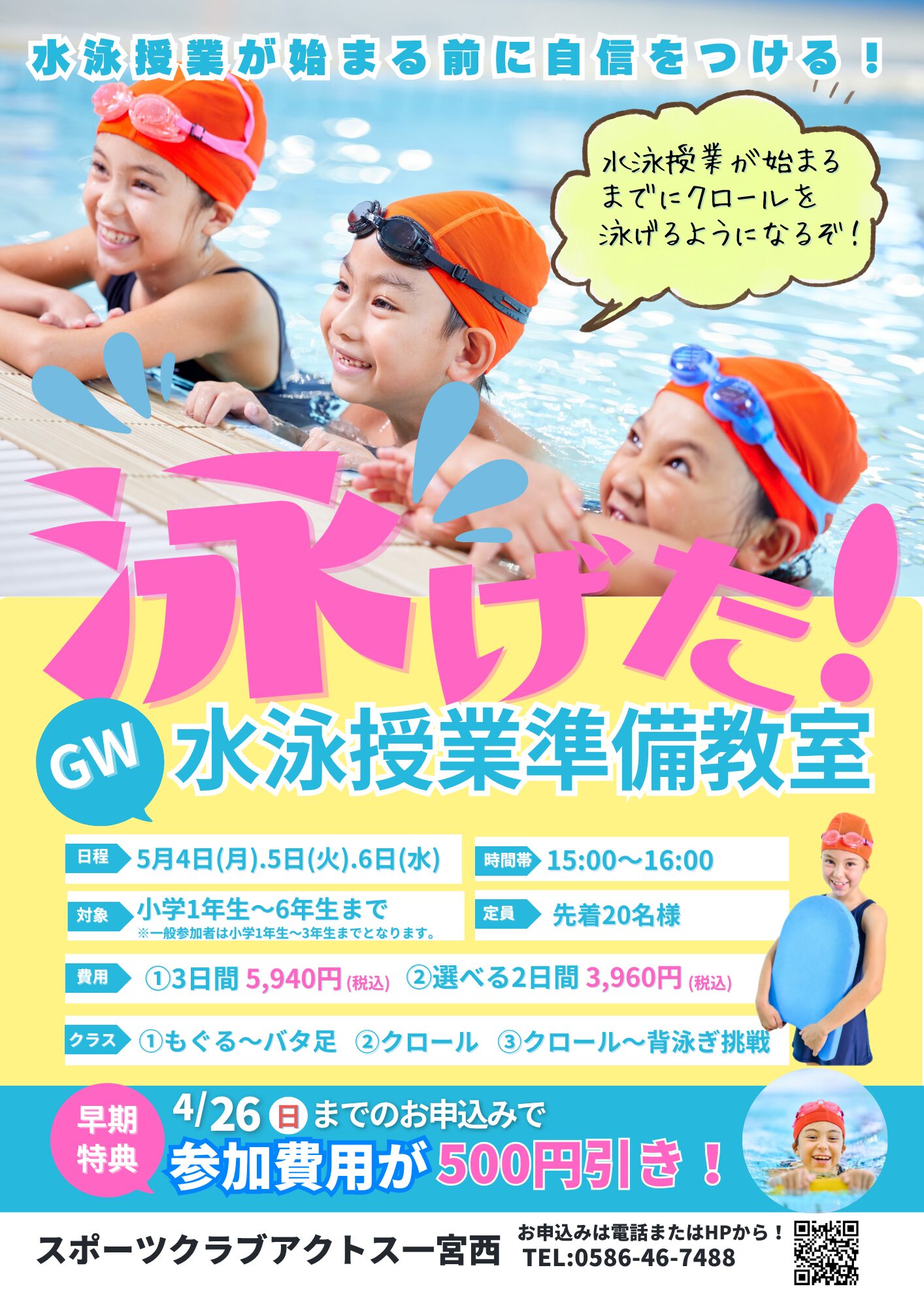 ★水泳授業に向けた準備教室★好評受付中!!先着20名様限定♪