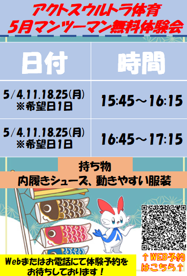 初めての習い事はこれで決まり!ウルトラ体育《体育事前対策スクール》無料マンツーマン体験実施中!
